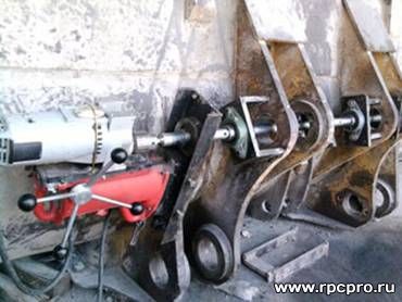 -в проушинах ковшей фронтальных погрузчиков ,бульдозеров, стрел экскаваторов в том числе карьерных, отверстий под пальцы;